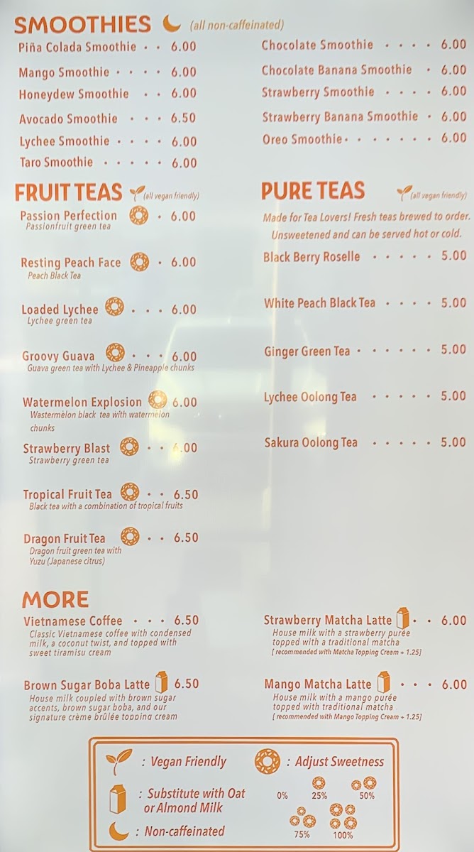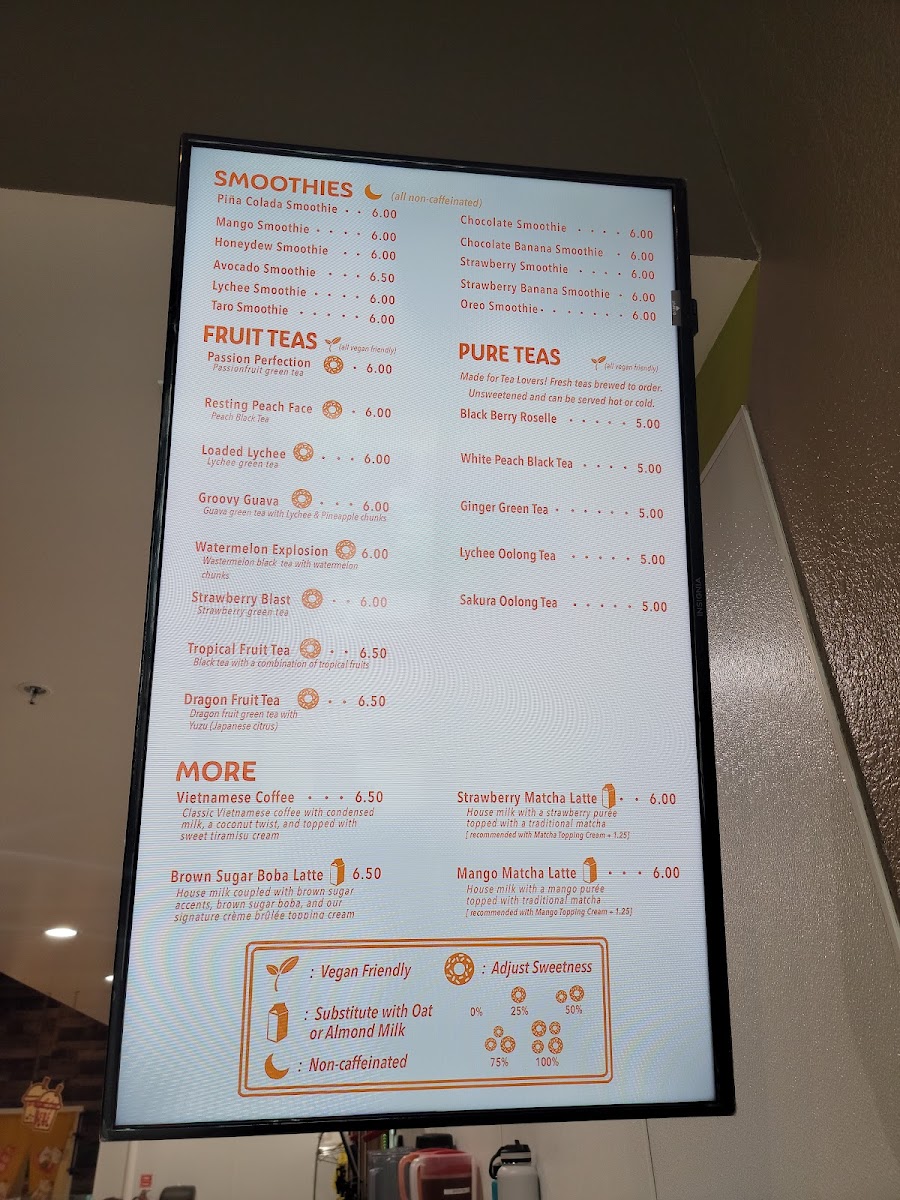 Welcome to Yum Cha Boba Tea & More, a delightful cafe nestled in Brentwood, CA, where your sweet cravings meet a burst of flavors. The menu features an enticing selection of fruit teas that will whisk you away on a tropical adventure. Dive into the Passion Perfection for a refreshing zing, or savor the vibrant Groovy Guava, enriched with juicy lychee and pineapple chunks. Not to be missed, the Dragon Fruit Tea offers a delightful taste of the exotic.